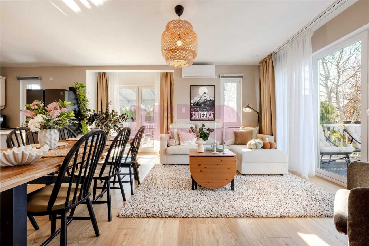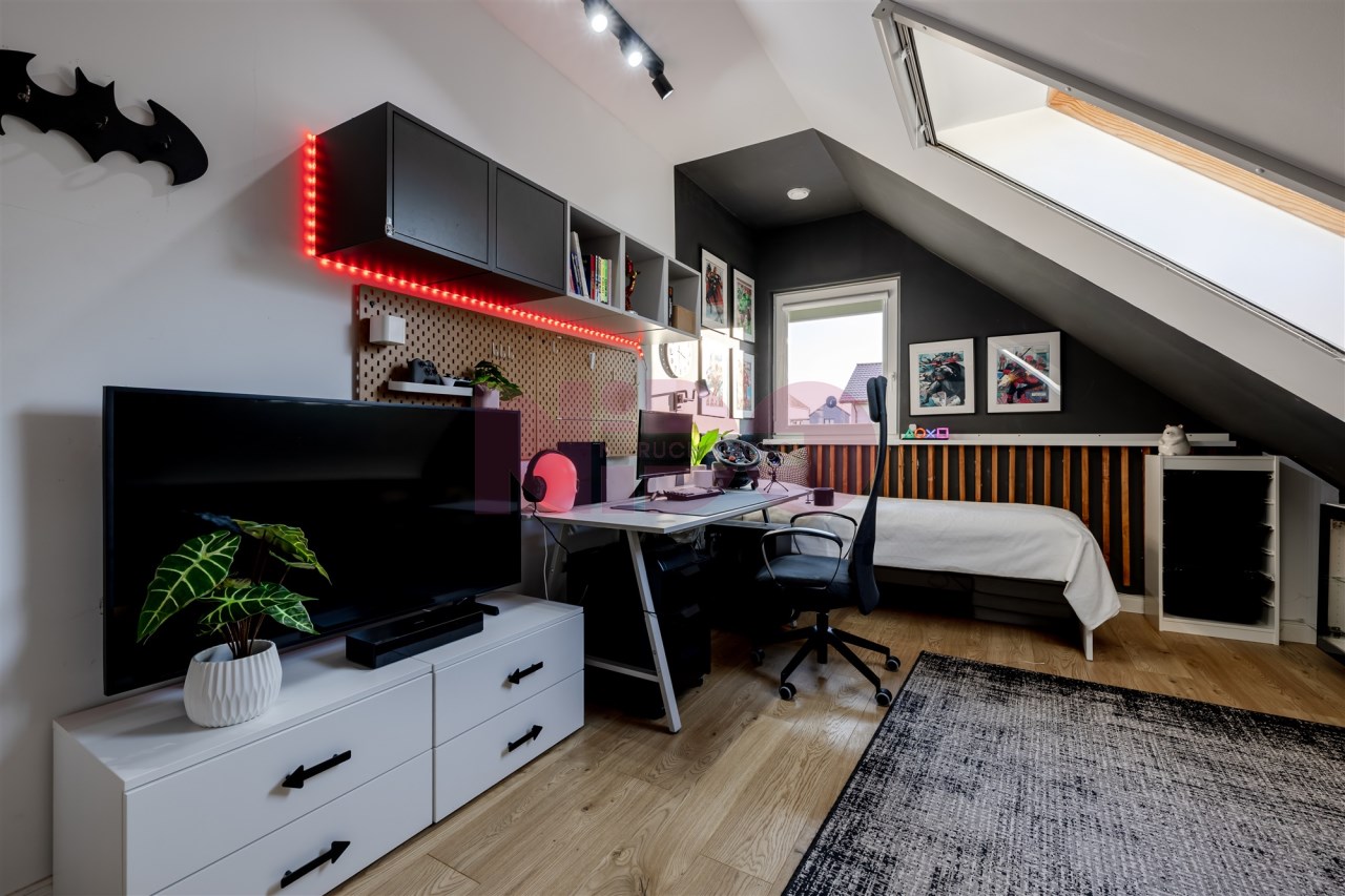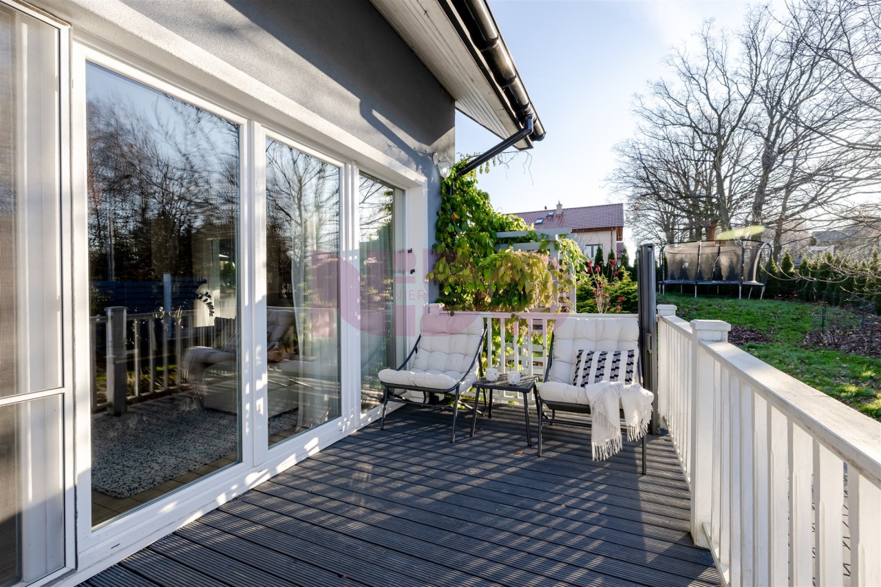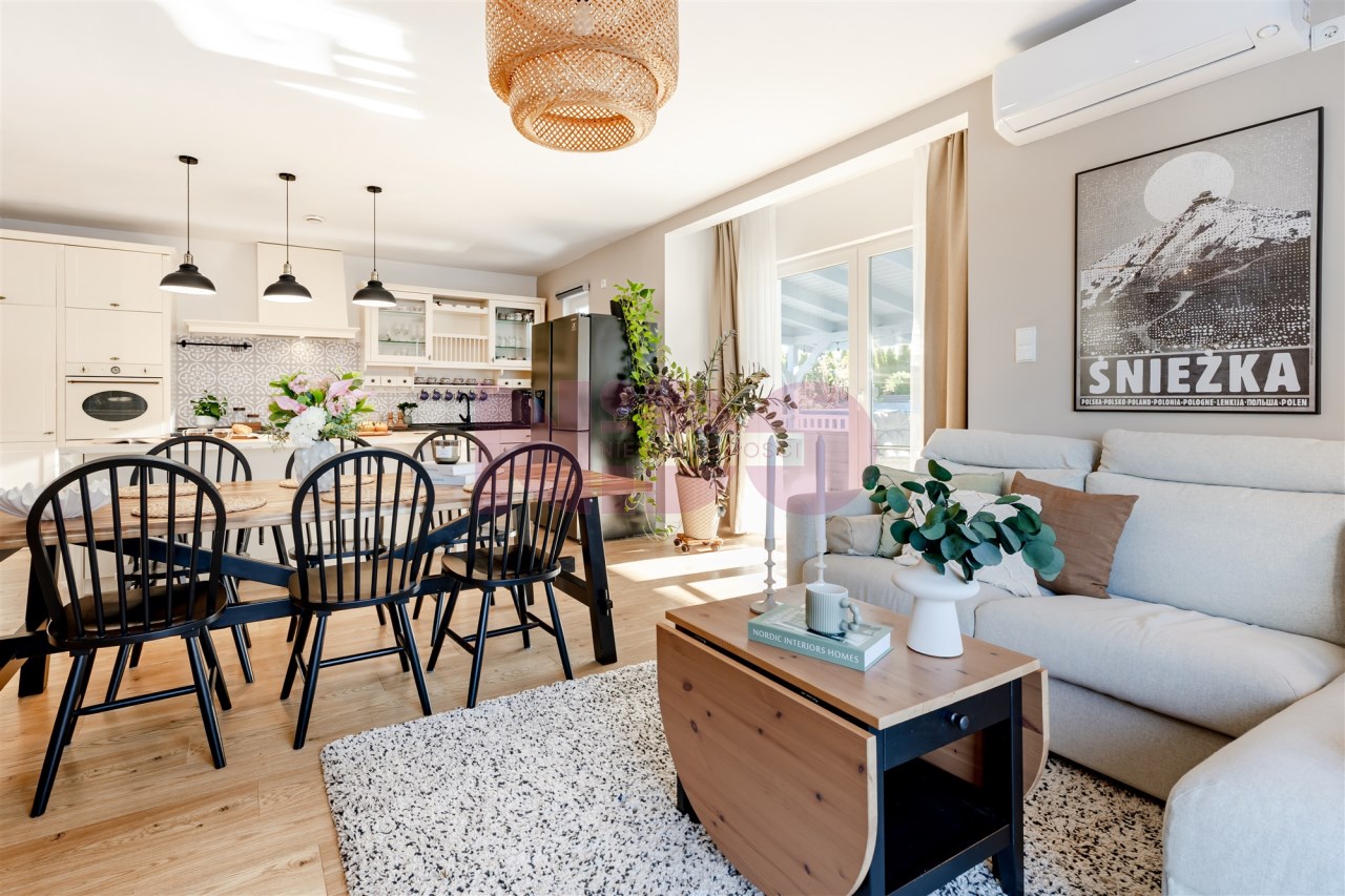 Dom jest nowoczesny, w pełni urządzony i gotowy do zamieszkania. Układ pomieszczeń jest praktyczny i przemyślany, a całość zapewnia komfortowe warunki dla rodziny. To oferta dla osób, które poszukują nieruchomości w spokojnej okolicy, z szybkim dojazdem do Wrocławia, z pełną infrastrukturą i dobrze zagospodarowaną działką.