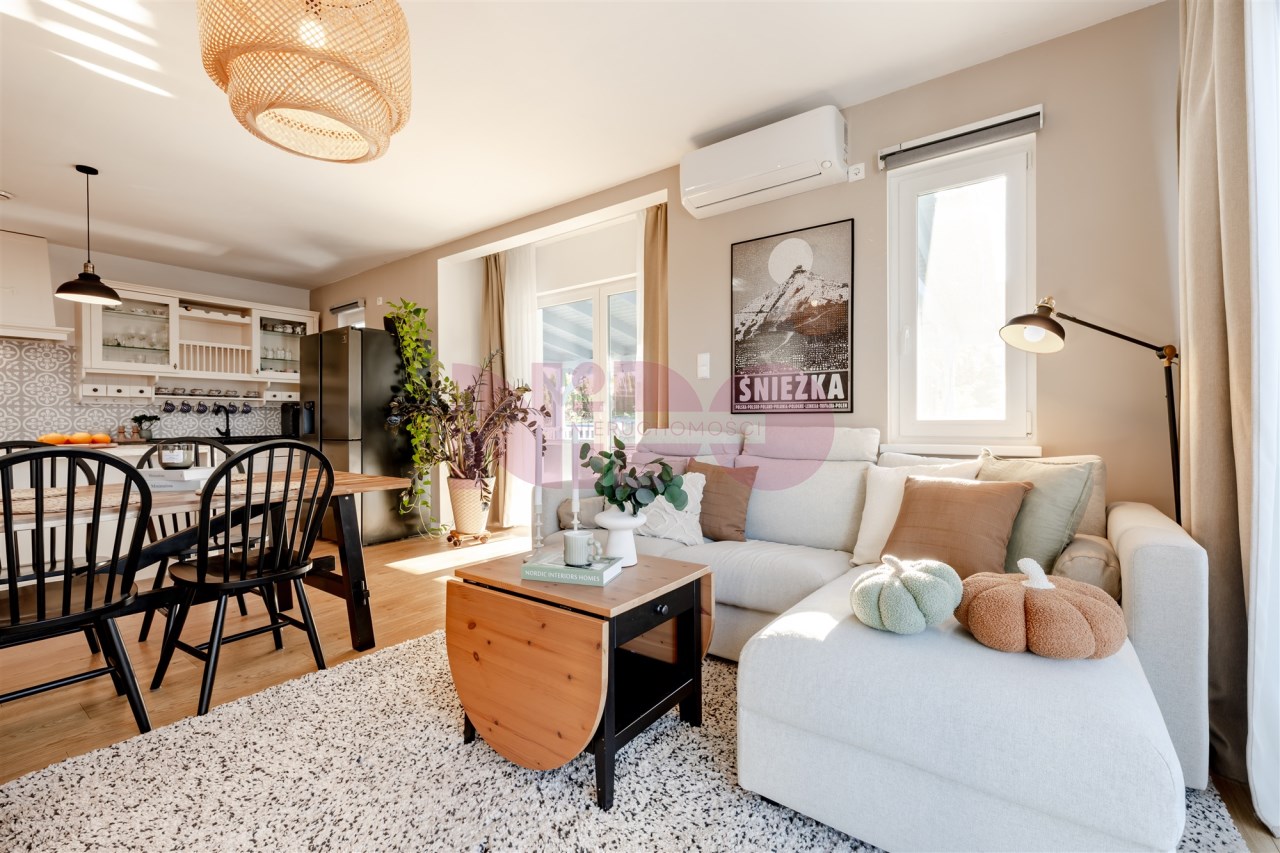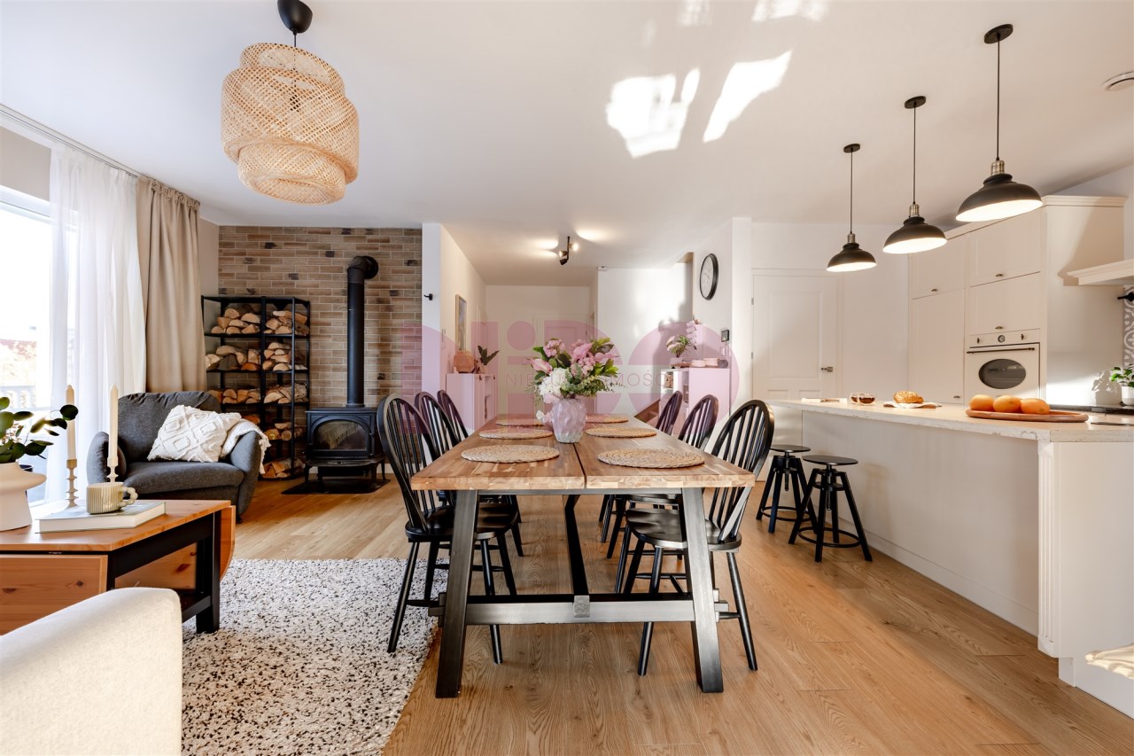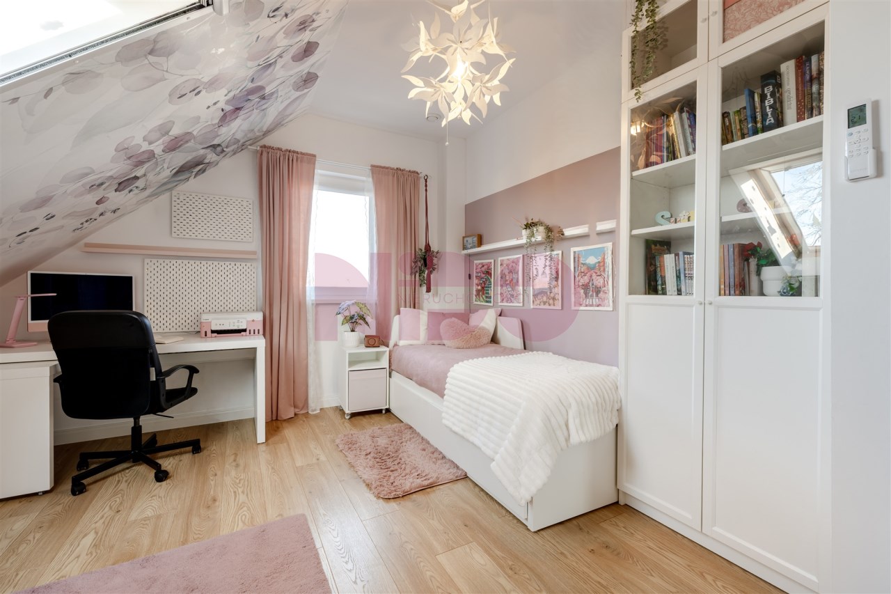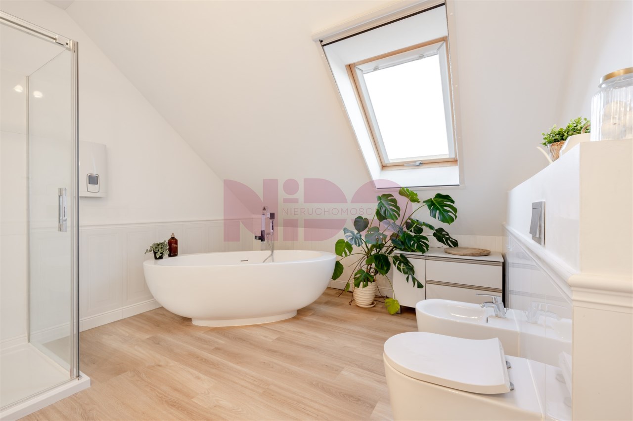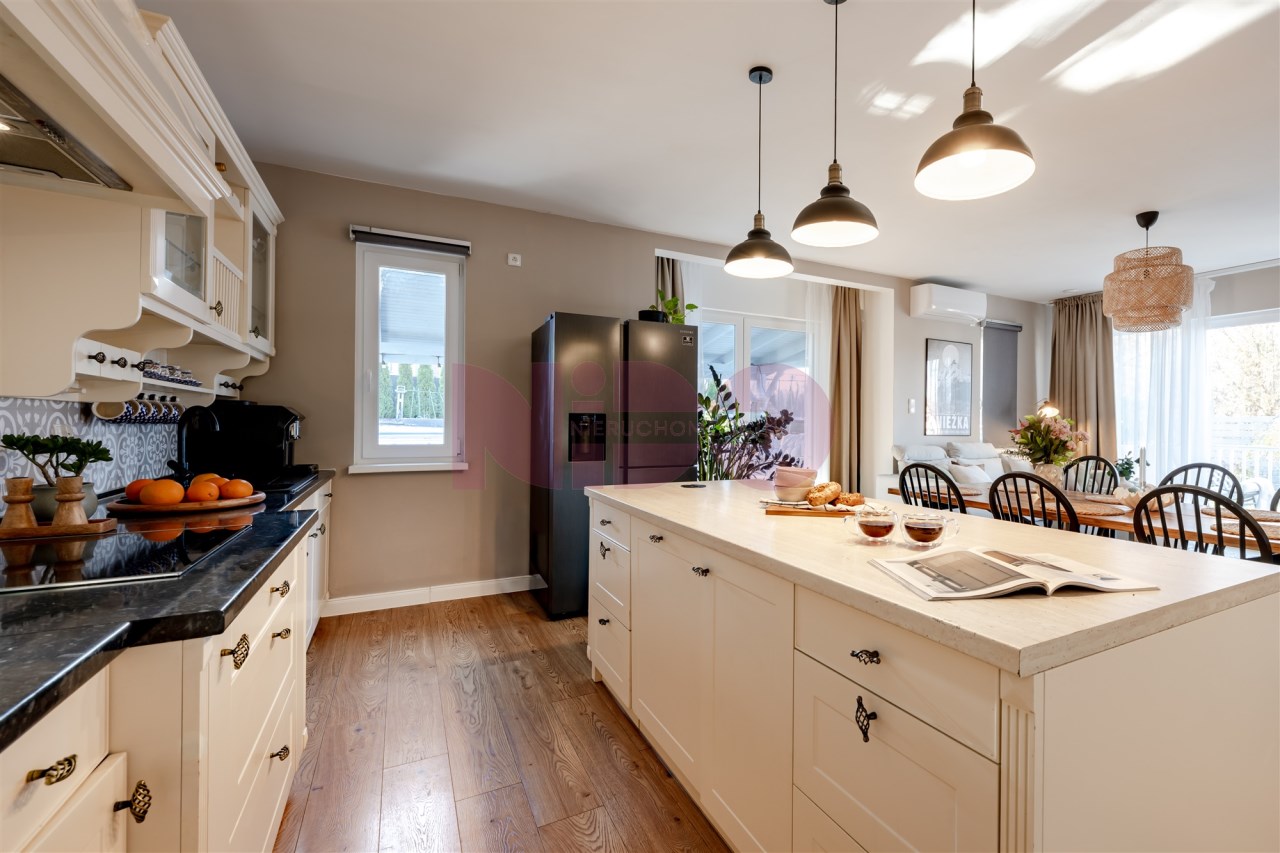 Dom jest nowoczesny, w pełni urządzony i gotowy do zamieszkania. Układ pomieszczeń jest praktyczny i przemyślany, a całość zapewnia komfortowe warunki dla rodziny. To oferta dla osób, które poszukują nieruchomości w spokojnej okolicy, z szybkim dojazdem do Wrocławia, z pełną infrastrukturą i dobrze zagospodarowaną działką.
