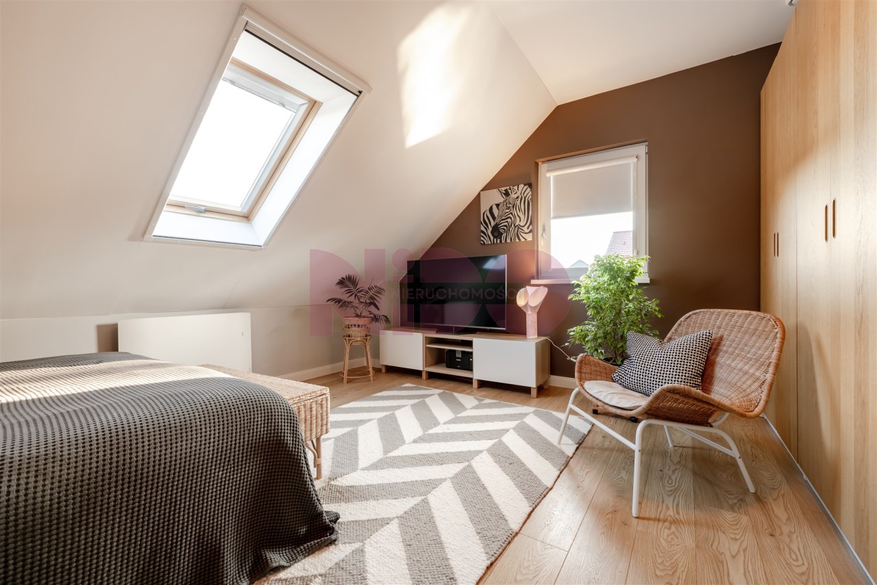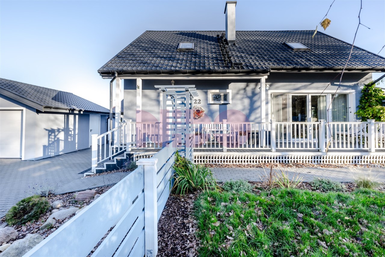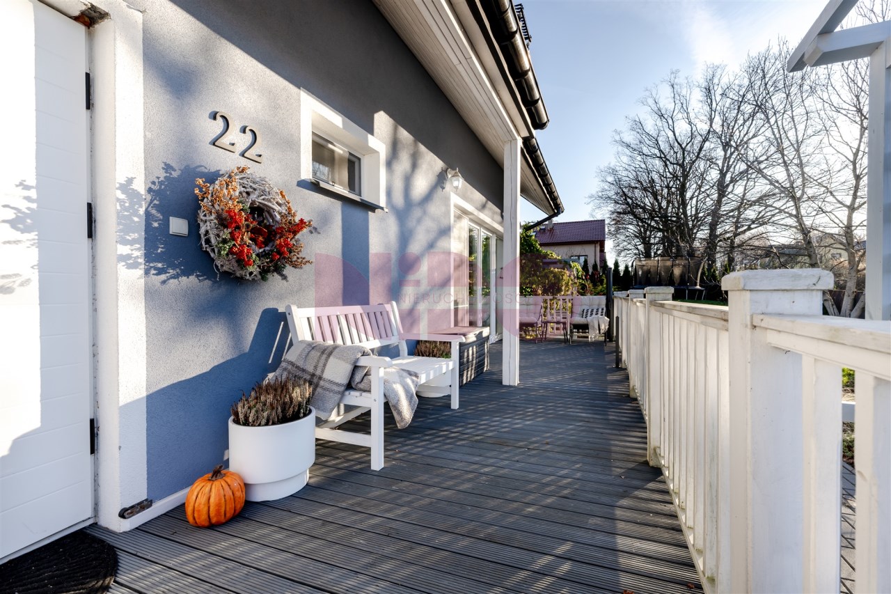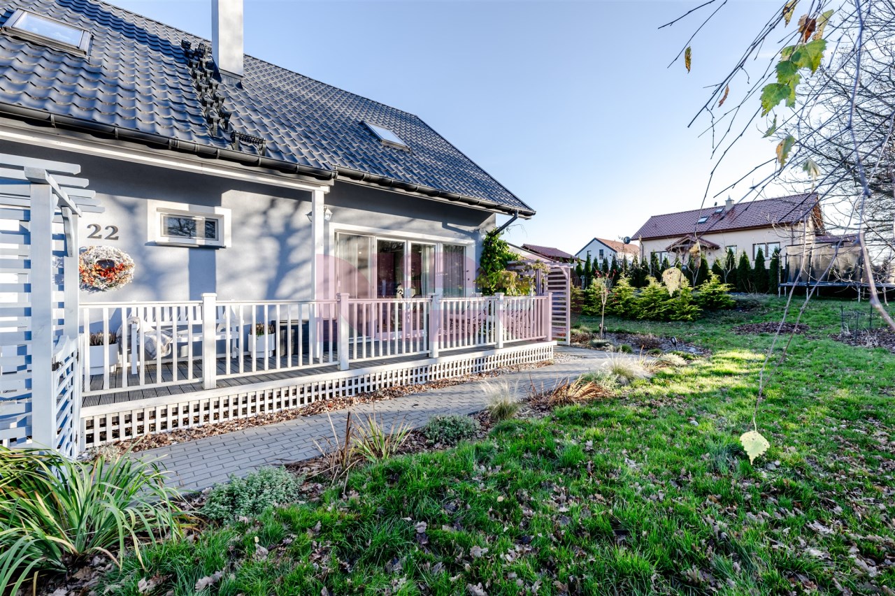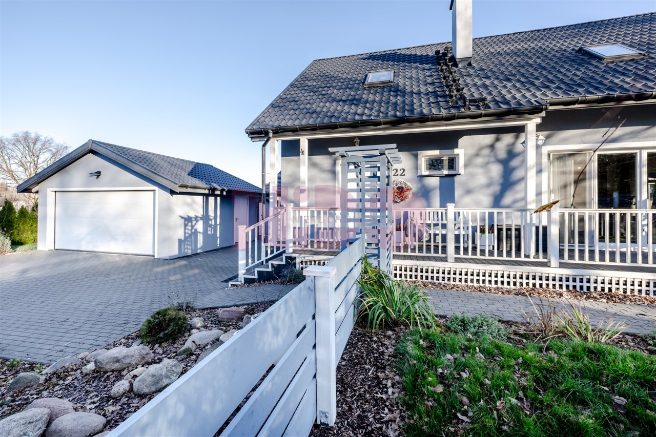 Działka ma powierzchnię 1133 m² i jest w pełni zagospodarowana. Na jej terenie znajduje się wolnostojący garaż o powierzchni 30 m2 na dwa samochody oraz podjazd, który pozwala zaparkować kolejne dwa auta. Teren jest ogrodzony i dobrze utrzymany. Duża część ogrodu daje możliwość dowolnego wykorzystania – można tu urządzić miejsce do odpoczynku, plac zabaw dla dzieci, ogródek lub niewielką przestrzeń rekreacyjną.