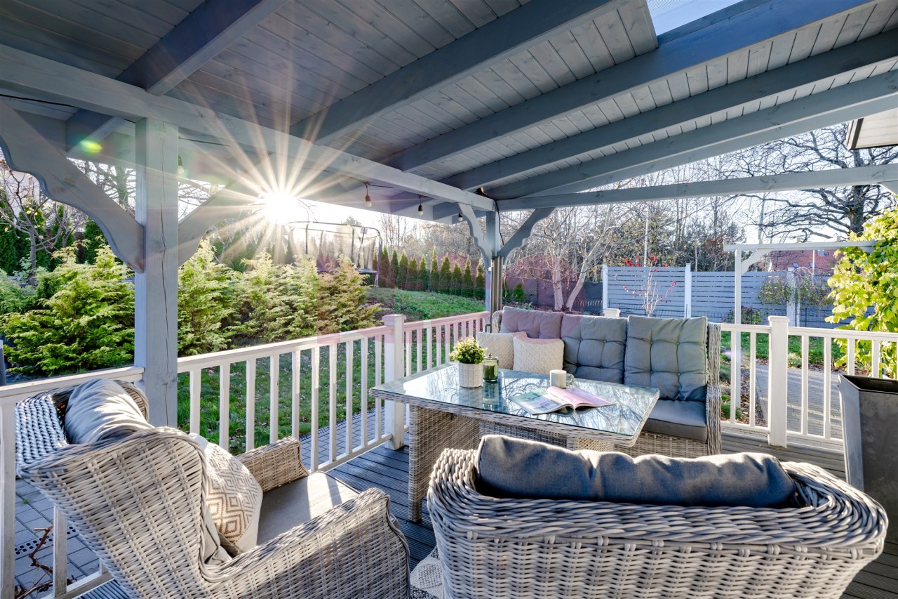 wyjście na dwa tarasy – większy zadaszony oraz drugi otwarty