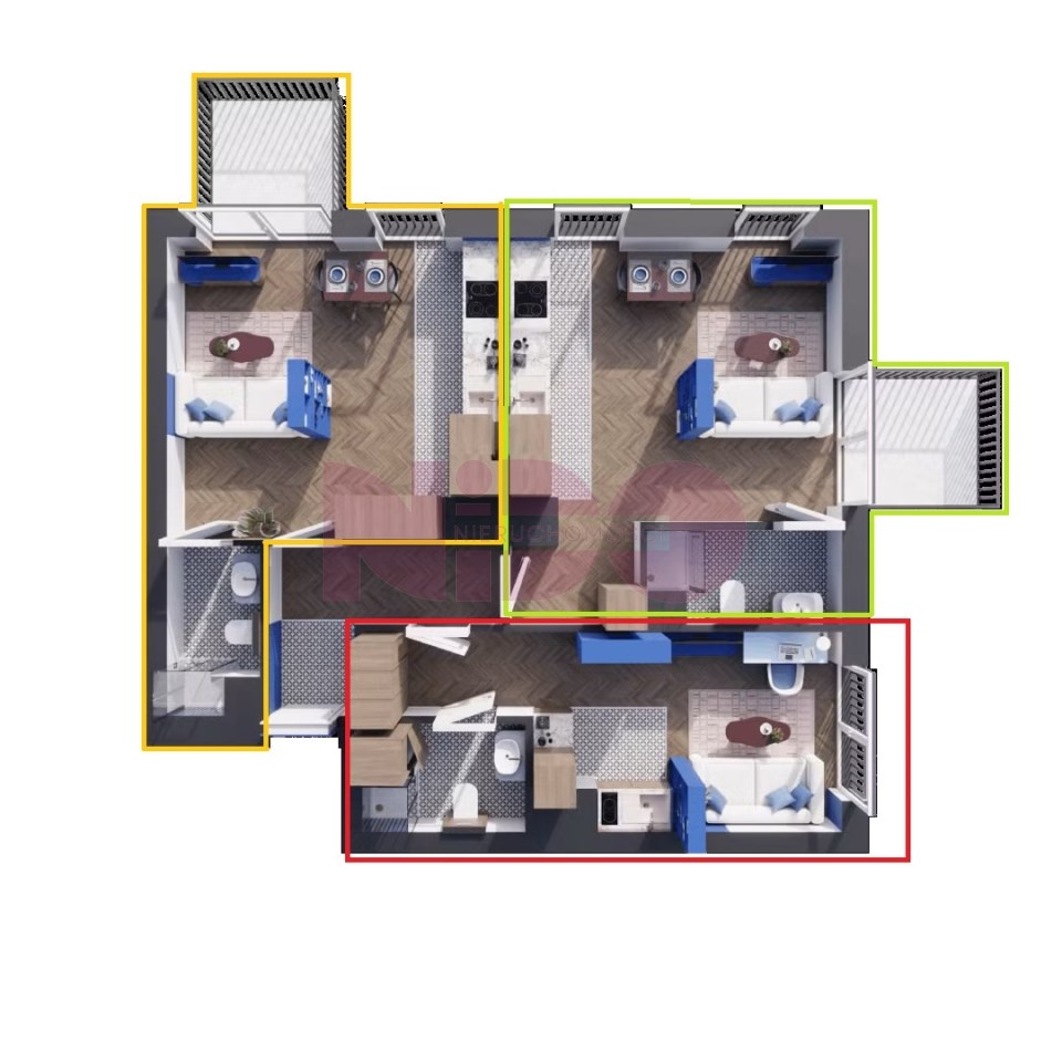 Cena:(cena regularna 1 052 344 zł) promocja na 1 020 774 zł =3x 340 248 zł za jedną kawalerkę