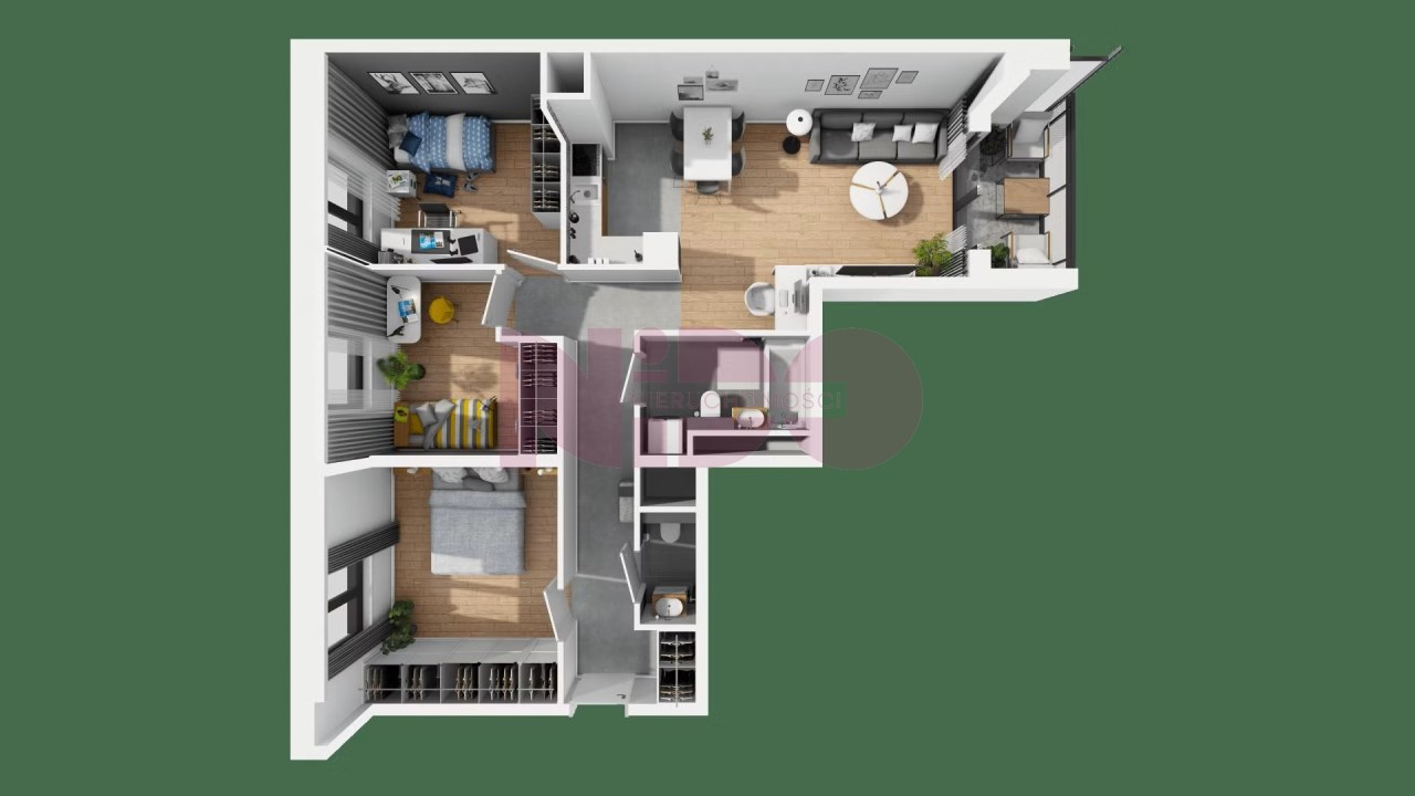 Mieszkanie jest w stanie deweloperskim. Zdjęcia zamieszczone w ogłoszeniu to wizualizacje, które mają na celu przedstawienie potencjału wnętrza.