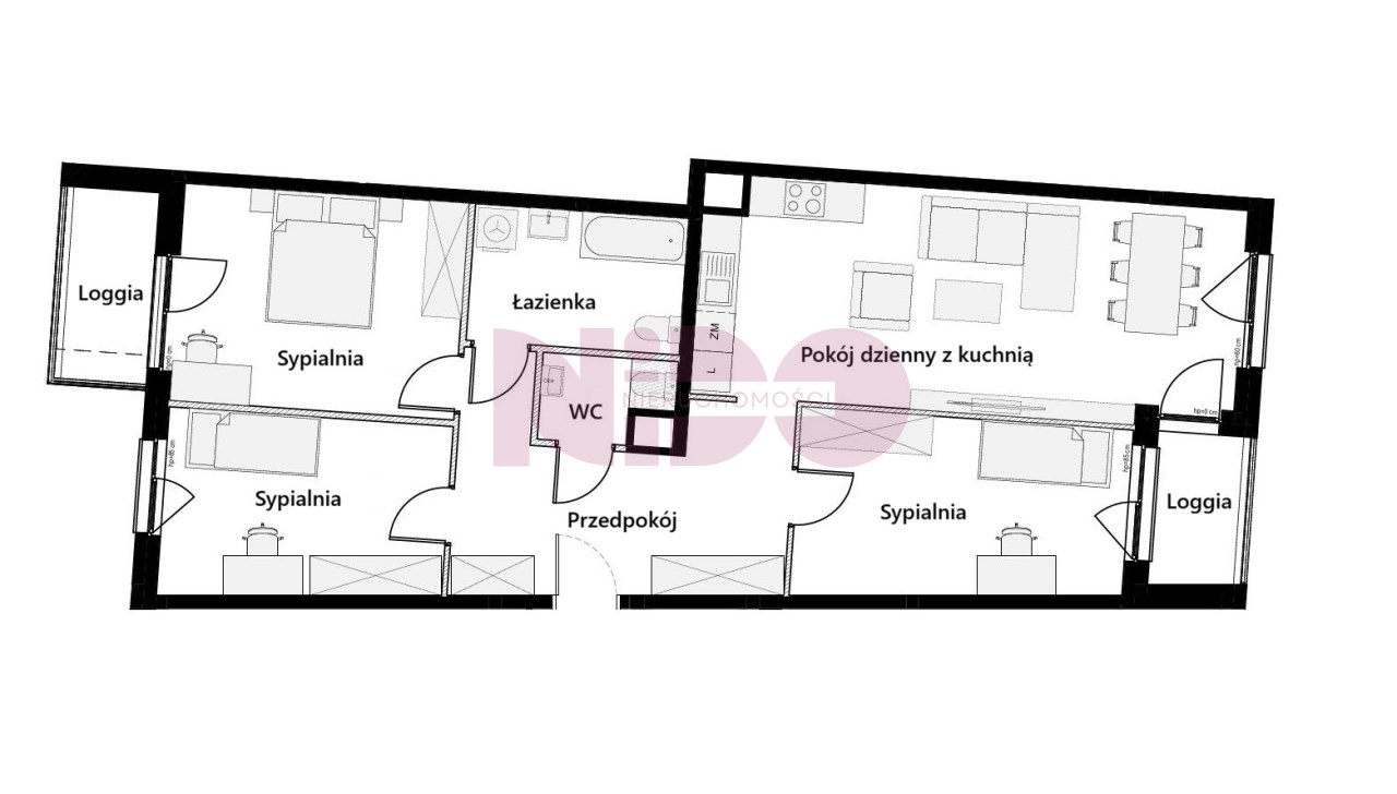 | Rodzaj kuchni | aneks kuchenny - połączony z salonem |